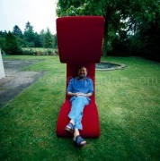 Foam seating on two levels which is reminiscent of an outsized chair.
